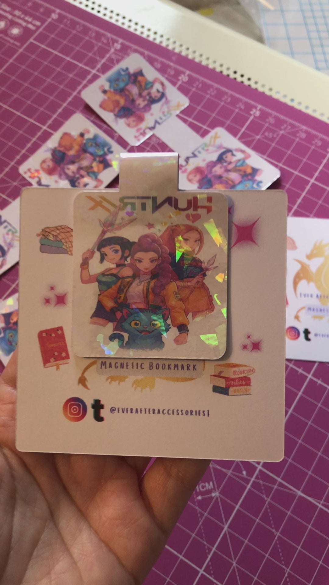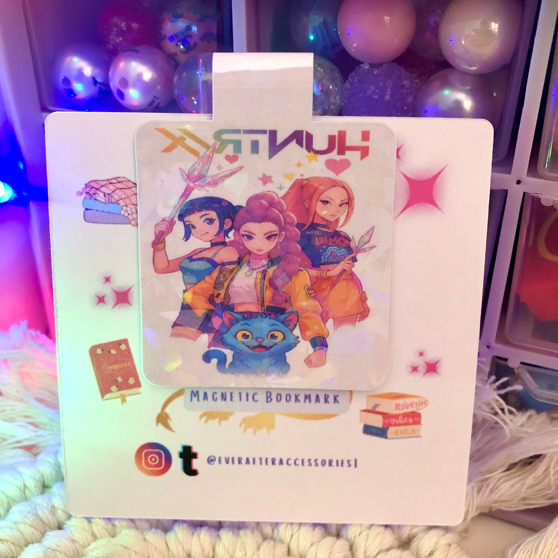 Handmade Holographic K-Pop Demon Hunters Magnetic Bookmark | Anime Bookmark | Kpop Gift for Readers & Book Lovers